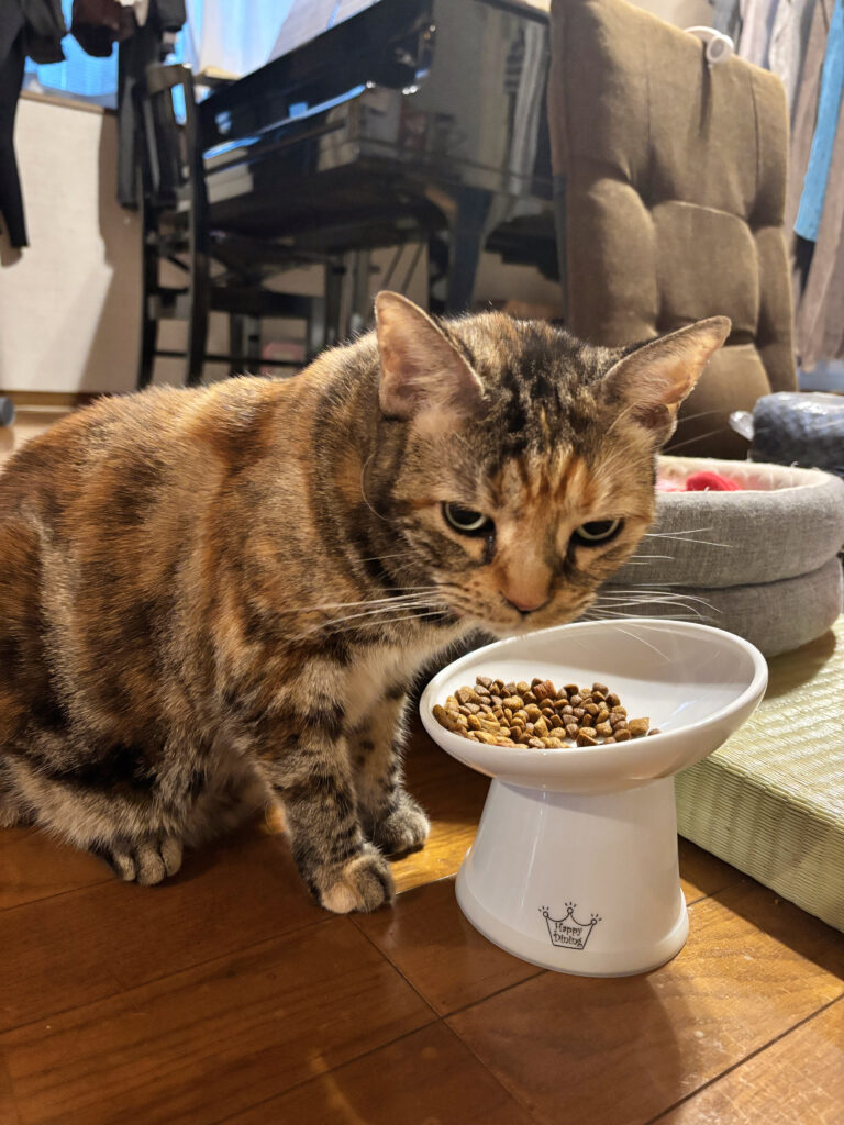 以前飼い主が茶子さん愛用のフード皿、最後の一枚を割ってしまったお詫びも兼ねてます(笑)
