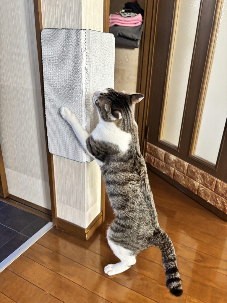 もう一つのプレゼントは壁に付けるタイプの爪とぎなんですが、こちらはまさか不評💦